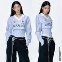 구디즈월드의 CURRIGES 크롭 셔츠 스트라이프 슬림핏 투피스 셔츠 크롭탑 상품입니다. 현재 가격은 66,000원입니다.