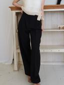 아이오 AIO의 핀턱 롱 슬랙스 세미 와이드핏 정장 긴바지 블랙 트라우저 상품입니다. 현재 11% 할인 중으로, 35,000원에 구매 가능합니다.