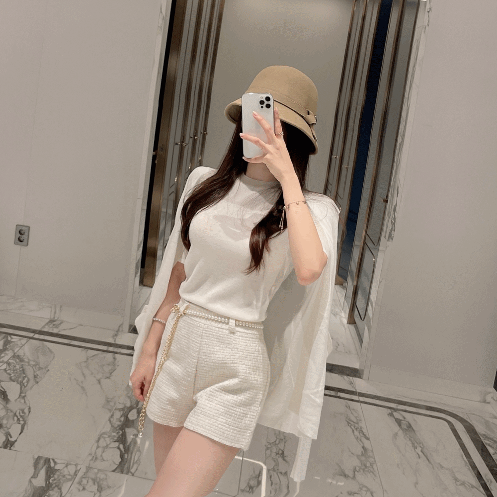 미엘르의 주문대폭주❤️ 수입) 라인 펄 5부 니트 티 가디건 세트 상품입니다. 현재 가격은 121,600원입니다.
