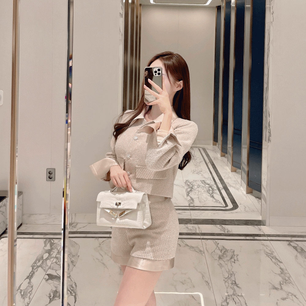 미엘르의 필링 펄 트위드 자켓 / 3 color 상품입니다. 현재 가격은 104,800원입니다.