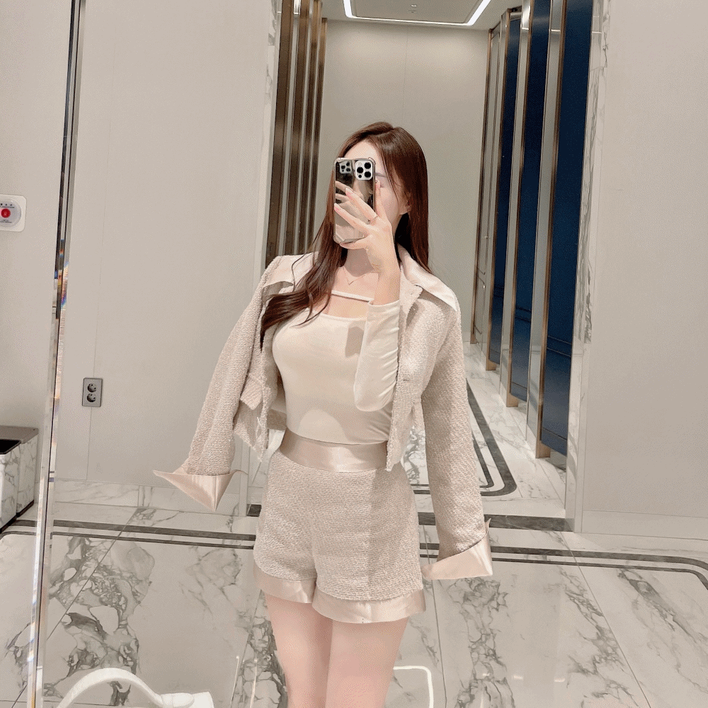 미엘르의 필링 펄 트위드 반바지 / S, M 상품입니다. 현재 가격은 56,500원입니다.