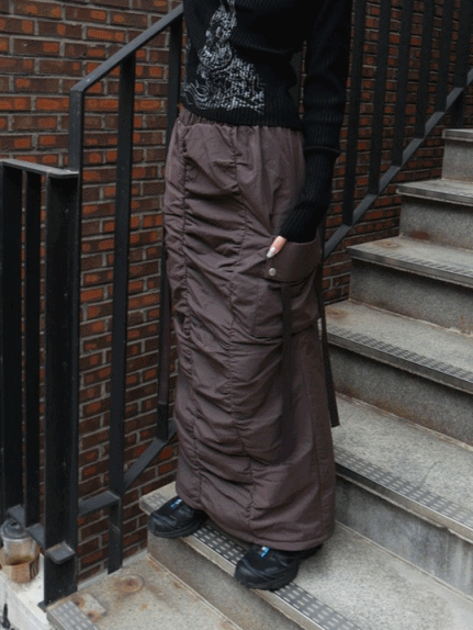 오버로즈의 오버로즈 패딩 셔링 카고 롱 스커트(2color) 상품입니다. 현재 가격은 49,000원입니다.