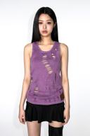 엘이이와이의 WASHING DAMAGED SLEEVELESS TOP PURPLE 상품입니다. 현재 50% 할인 중으로, 74,000원에 구매 가능합니다.