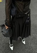 See-through top Hooded short-sleeved top Midi skirt layered pants
