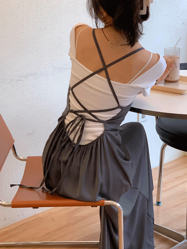 마르헨브리즈의 마르헨브리즈 크로싱 새틴 롱 원피스 [차콜] 상품입니다. 현재 가격은 48,000원입니다.