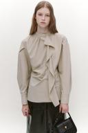 그레이데시온의 Unbalance Tuck Drape Blouse BEIGE [GBW7BL56BE] 상품입니다. 현재 가격은 155,000원입니다.