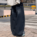 우누의 우누 [당일발송] 블랙 절개 와이드 팬츠 (1 color) 커브 네이비 진청 워싱 빈티지 라운딩 벌룬 봄 가을 OOT 우트 데님 상품입니다. 현재 가격은 80,900원입니다.