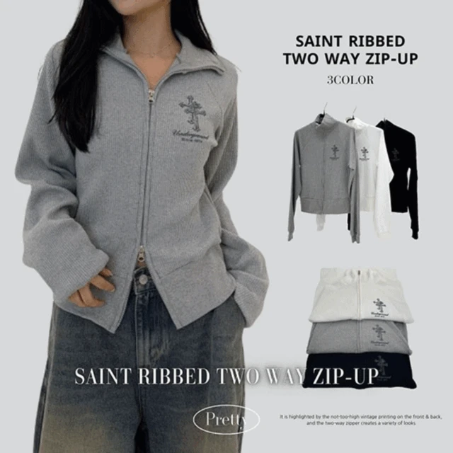 프리티윤의 [y2k/허리잘록] 세인트 골지 투웨이 집업 - 3color 상품입니다. 현재 가격은 30,900원입니다.