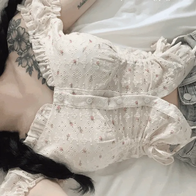 하르르의 부케 플라워 스트링 퍼프 반팔 블라우스 상품입니다. 현재 16% 할인 중으로, 28,000원에 구매 가능합니다.