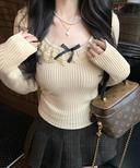 라이키걸의 라이키걸 무료배송 리본 큐빅 레이스 유넥 골지니트 긴팔 티셔츠 (퍼플,와인,살구,블랙) 상품입니다. 현재 34% 할인 중으로, 32,300원에 구매 가능합니다.