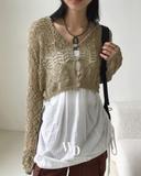 원더원더의 [오늘출발/MADE] 어틸 빈티지 펀칭 단추 니트 후드 크롭 긴팔 가디건 상품입니다. 현재 가격은 33,900원입니다.