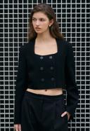 르네제이의 Double Button Crop jacket 상품입니다. 현재 30% 할인 중으로, 190,400원에 구매 가능합니다.