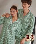 오프아워의 [빼빼로데이 1+1] 민티 스트라이프 긴팔 커플 잠옷 세트 상품입니다. 현재 35% 할인 중으로, 57,900원에 구매 가능합니다.
