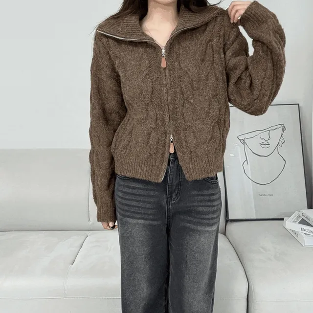 니블리의 NB649 - 투웨이 도톰 꽈배기 니트 집업 상품입니다. 현재 가격은 39,900원입니다.