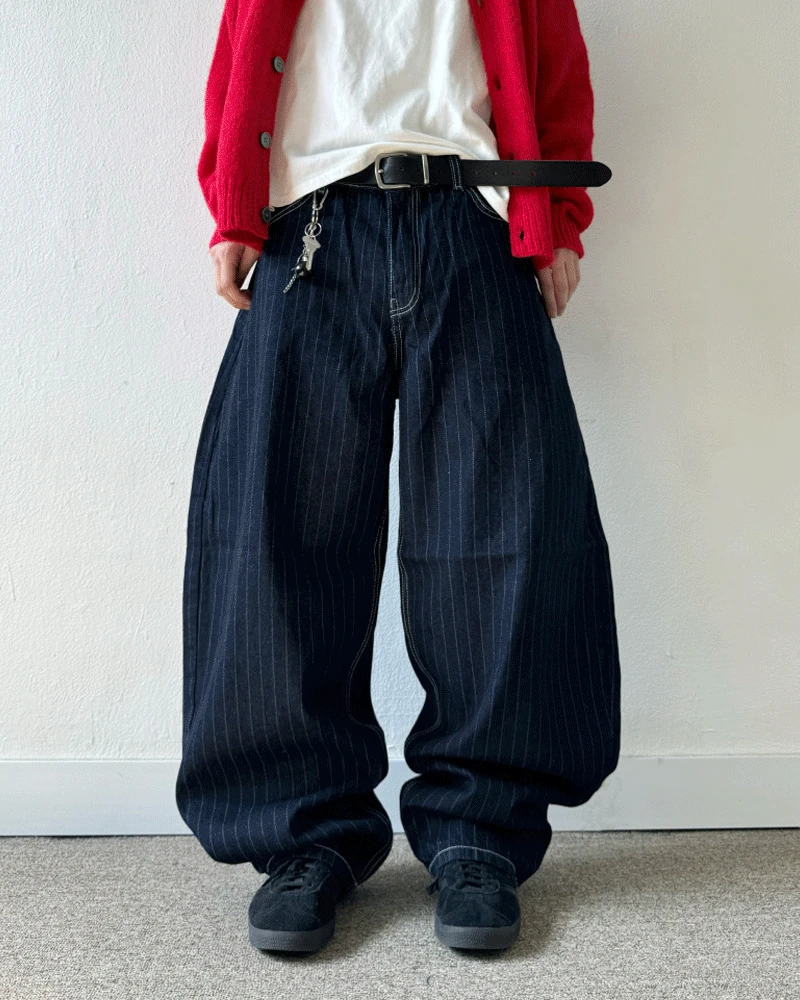 인텍스쳐의 스트라이프 벌룬 데님 팬츠 (1C) 상품입니다. 현재 가격은 58,000원입니다.
