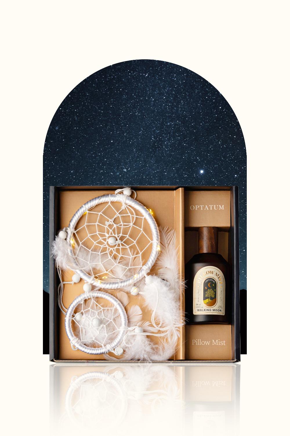 옵타움의 [굿나잇/숙면선물] 옵타움 필로우 미스트 & 드림캐처 선물세트 상품입니다. 현재 46% 할인 중으로, 30,000원에 구매 가능합니다.