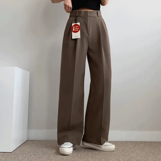 미우블랑의 *겨울버전* [숏&롱/발열기모] 하이웨스트 더블핀턱 와이드 일자 스판 슬랙스 YKK 링클프리 키작녀 키큰녀 기장선택 겨울 이중잠금 상품입니다. 현재 20% 할인 중으로, 22,500원에 구매 가능합니다.