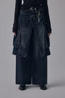 Layered Wrap Skirt Denim Cargo Pants [ Dark navy ]