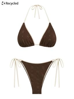 시몰리 재활용 원단 아일렛 자카드 레이스 홀터 트라이앵글 비키니 세트