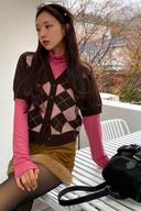 바이도자의 아가일 니트 반팔 가디건 상품입니다. 현재 20% 할인 중으로, 47,200원에 구매 가능합니다.