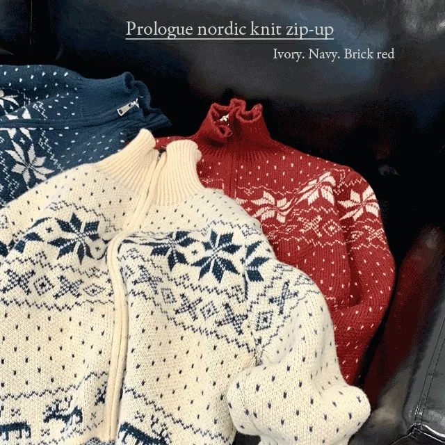 포우나인의 당일🚛 [연말룩 강추☃] 프롤로그 노르딕 니트집업 상품입니다. 현재 20% 할인 중으로, 18,100원에 구매 가능합니다.