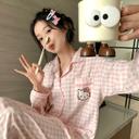 핑크 체커보드 키티 잠옷 가을 겨울 키티 파자마 세트 홈웨어 상품입니다. 현재 27% 할인 중으로, 21,900원에 구매 가능합니다.