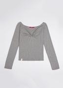 헤인트의 PUNCHING SHIRRING V-NECK TOP_2COLORS_GRAY 상품입니다. 현재 10% 할인 중으로, 57,600원에 구매 가능합니다.