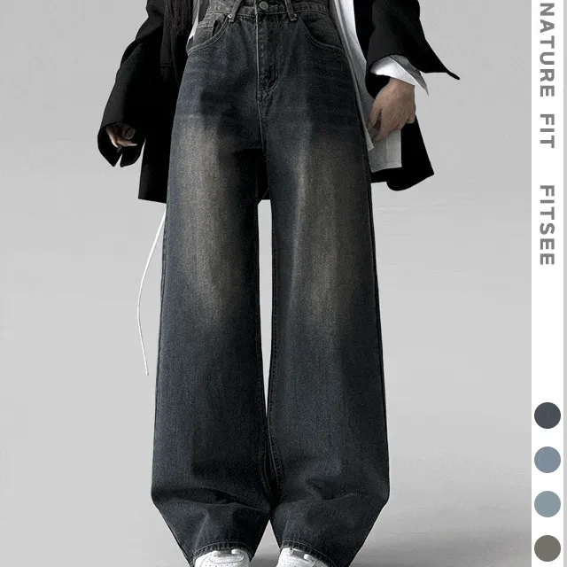 [+가을컬러추가] 스모크 워싱 와이드 정핏 일자 캐쥬얼 데일리 데님 팬츠 바지