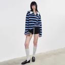 NS76의 NS76 티셔츠 카라넥 스트라이프 루즈핏 캐주얼 긴팔 티셔츠 (블루) 상품입니다. 현재 가격은 69,800원입니다.