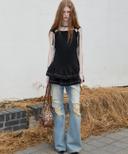낫노잉의 3/28 예약배송 Eyelet Sleeveless Tee OPS (BLACK) 상품입니다. 현재 가격은 98,000원입니다.