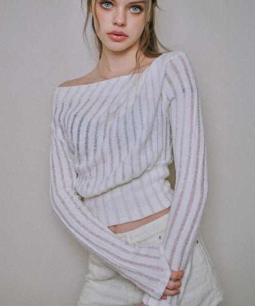 디어미의 셔링 오프숄더 니트 탑 [화이트] 상품입니다. 현재 30% 할인 중으로, 50,400원에 구매 가능합니다.