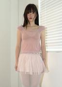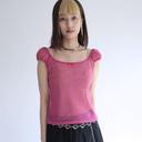 SEE-THROUGH MESH RIBBON TOP MILK PINK