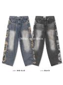 코시하루의 [하루 100장돌파] 밀리터리 카모 와이드 데님 상품입니다. 현재 15% 할인 중으로, 97,200원에 구매 가능합니다.