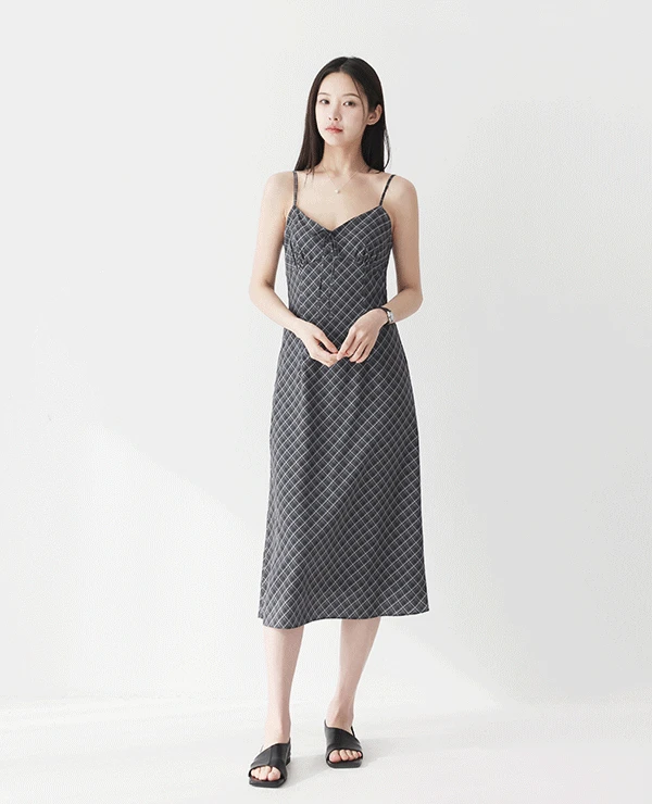 르베네의 베트 체크 슬리브리스 뷔스티에 롱 나시원피스 (2color) 상품입니다. 현재 가격은 53,900원입니다.