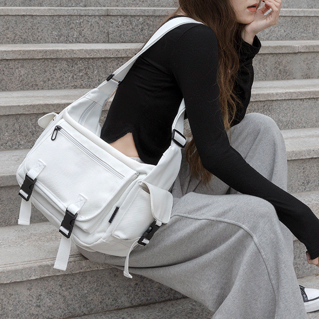 라이니의 당일배송 캔버스 버클 에코 메신저백 상품입니다. 현재 29% 할인 중으로, 12,300원에 구매 가능합니다.