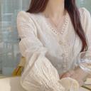 수니의 풀문 브이넥 레이스 블라우스 상품입니다. 현재 가격은 17,500원입니다.