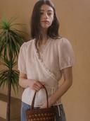 틸아이다이의 Frill wrap blouse TISU03BL03_Ivory 상품입니다. 현재 60% 할인 중으로, 38,800원에 구매 가능합니다.