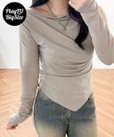플레이루의 플레이루 [2SIZE] 빅사이즈 비비 드레이프 셔링 사선언발 긴팔 티셔츠 (화이트/블랙/베이지) 상품입니다. 현재 21% 할인 중으로, 26,010원에 구매 가능합니다.