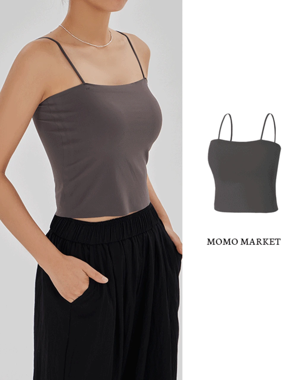 모모마켓의 에센셜 브라캡 올인원 나시 상품입니다. 현재 29% 할인 중으로, 8,900원에 구매 가능합니다.