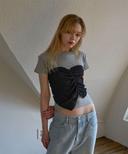 오오엠엘의 뷔스티에 레이어드 티셔츠 (멜란지 그레이) 상품입니다. 현재 21% 할인 중으로, 31,100원에 구매 가능합니다.
