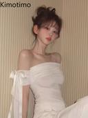 알리익스프레스의 Kimotimo 비대칭 오프 숄더 보우 레이스 업 티셔츠 여성 여름 섹시한 폴드 슬림 피트 Y2k 탑 패션 매운 걸스 파티 티셔츠 상품입니다. 현재 48% 할인 중으로, 13,492원에 구매 가능합니다.