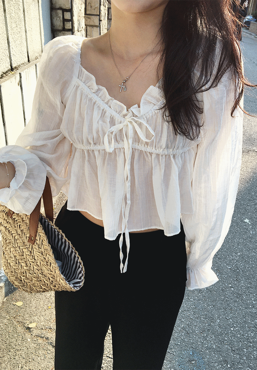 에오브의 킨즈 투웨이 시스루 오프숄더 블라우스 2color 상품입니다. 현재 가격은 43,800원입니다.