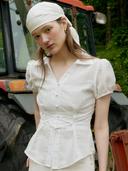 아이토브서울의 코르셋 숏 슬리브 셔링 블라우스 white 상품입니다. 현재 36% 할인 중으로, 62,720원에 구매 가능합니다.