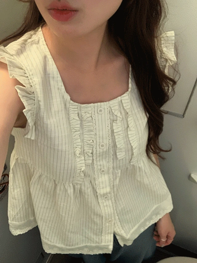 어베인의 ✨48시간 5% SALE✨ 크레페 슬리브리스 프릴 레이스 셔링 블라우스 상품입니다. 현재 13% 할인 중으로, 27,500원에 구매 가능합니다.