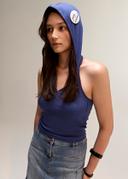 Button Hood Halterneck Top Navy