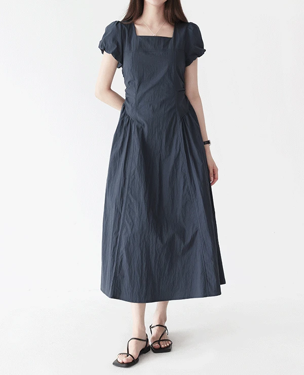 르베네의 [여름신상] 하우스 스퀘어넥 퍼프 반팔 롱원피스 (2color) - 나일론 여름원피스 A라인 밴딩 출근룩 여름하객룩 하객룩원피스 바스락 바스락원피스 나일론원피스 상품입니다. 현재 가격은 45,700원입니다.