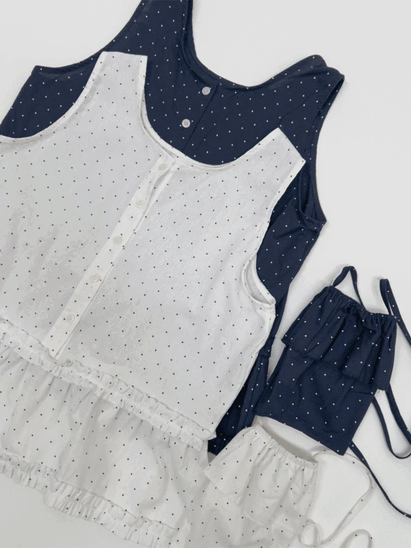 인챈트미의 [미니백SET] 프릴 도트 민소매 블라우스 (2C) 상품입니다. 현재 가격은 37,000원입니다.
