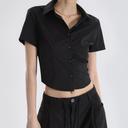 브랜드의 베이직 크롭 반팔 셔츠 블랙 | 후루츠패밀리 상품입니다. 현재 가격은 14,000원입니다.