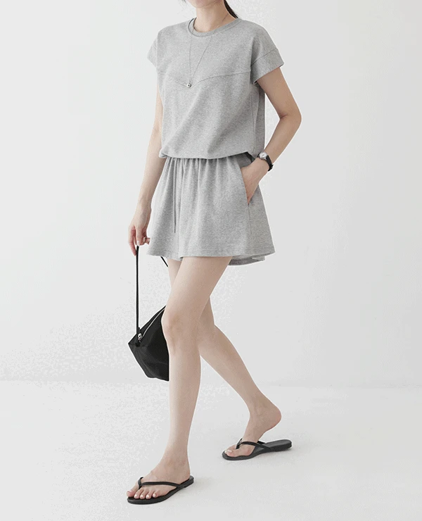 르베네의 올데이 스트링 반팔 맨투맨 숏팬츠 트레이닝세트 (3color) 상품입니다. 현재 가격은 44,800원입니다.