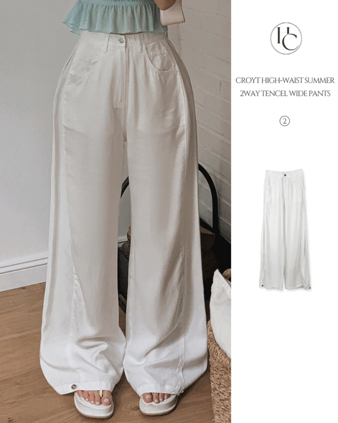 하이클래식의 크로잇 하이웨스트 썸머 여름 찰랑바지 핀턱 투웨이 밑단 스냅 텐셀 와이드 롱 팬츠 상품입니다. 현재 16% 할인 중으로, 22,900원에 구매 가능합니다.